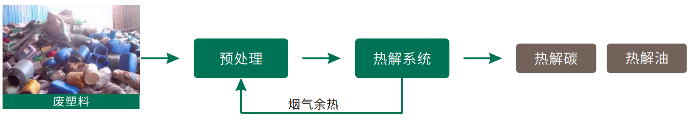 医疗废物由自动翻料机倒入进料仓, 通过双辊加料机进入热解碳化处理, 产物热解油及热解碳均可作为燃料外售。