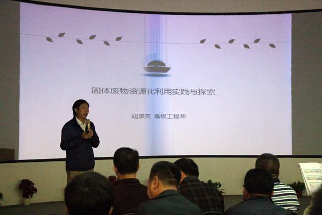 随后,培训班一行又集体听取了董事长明果英先生《关于固体废物资源化利用实践与探索》的专题报告。明果英董事长首先从固体废物与生态环境的关系展开论述,提出“垃圾是放错地方的资源”,进一步引出了365上市公司官网公司正在研发的第三代生活垃圾资源化利用技术。该技术方案体现了“联合工艺、协同处理”的理念,集成了RDF制备、催化热解、高温腐熟等多种处理工艺,与现有处理技术相比,具有资源价值更大、环境效应更佳、投资收益更大、适应范围更广等特点。明果英董事长的此次发言得到了在场人士的热烈响应,并就生态工厂能否成为第三代生活垃圾处理模式与现场培训班成员进行了探讨。