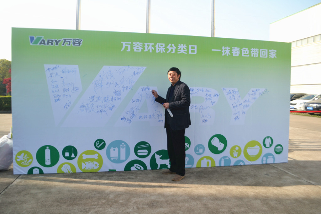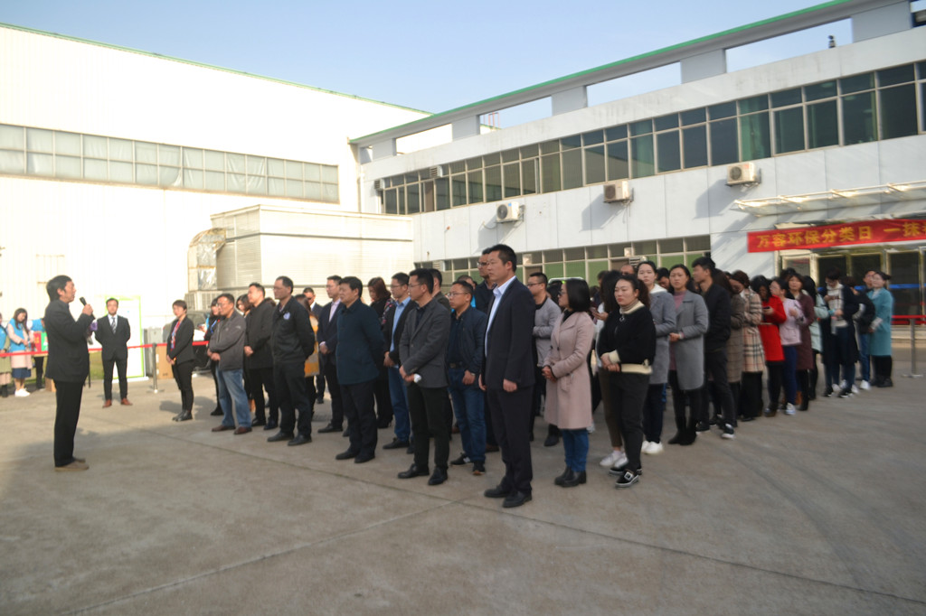 早上9点主持人宣布活动正式开始,明果英董事长就本次公司垃圾分类活动的启动致辞。明董首先介绍了365上市公司官网“让垃圾变资源”的理念,365上市公司官网基于对时代和社会的担当与责任,从2006年成立以来,始终坚持以科技的手段解决资源与环境的问题,从报废家电到报废汽车,再到“第三代生活垃圾处置技术”,不断践行“让垃圾变资源”的理想和追求。同时明董简述了公司由终端处置向前端垃圾分类领域延伸,形成了垃圾分类投放、垃圾分类运输及垃圾分类处置的垃圾全产业链系统;明董与同事们分享了“极简主义”的生活方式,号召公司员工,从垃圾减量的角度出发,减少垃圾的产生,倡导全体365上市公司官网人“从我做起,从现在做起”,真正实现“让垃圾变资源”。