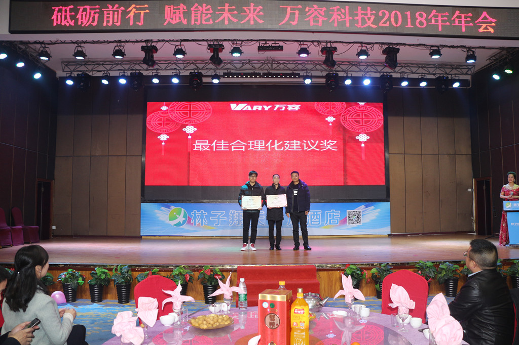 蒋实等17名员工荣获新人奖;李颂华等19名员工荣获员工奖;装备制造部PL190-1工艺优化小组、营销中心售后服务处李跃华荣获合理化建议奖;营销中心售后服务处、超凡大件垃圾及生物质颗粒项目荣获项目奖;经营计划部、城市矿产销售团队荣获服务奖;装备制造部工艺和铆焊团队、装备制造部技术团队荣获质量改进奖;工程部机电安装团队、装备制造部生产团队荣获团队奖;「一起分类」团队荣获年度特别创新奖;汨罗365上市公司官网电子团队、广东绿晟团队荣获年度特别贡献奖。
