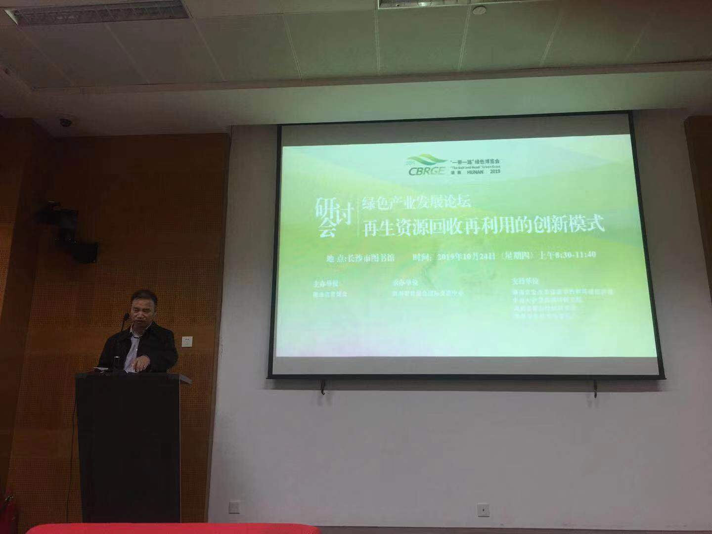 2019年10月24日,由中国国际贸易促进委员会湖南省分会主办,湖南省侨联青年委员会、湖南省循环经济协会协办的"再生资源回收创新模式次研讨会"在长沙市图书馆举行。