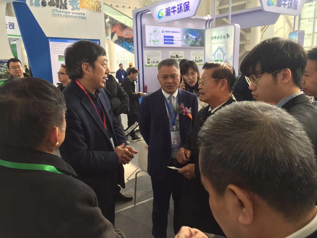 董事长明果英陪同生态环境部副部长庄国泰、湖南省副省长何报翔参观365上市公司官网展位并作介绍