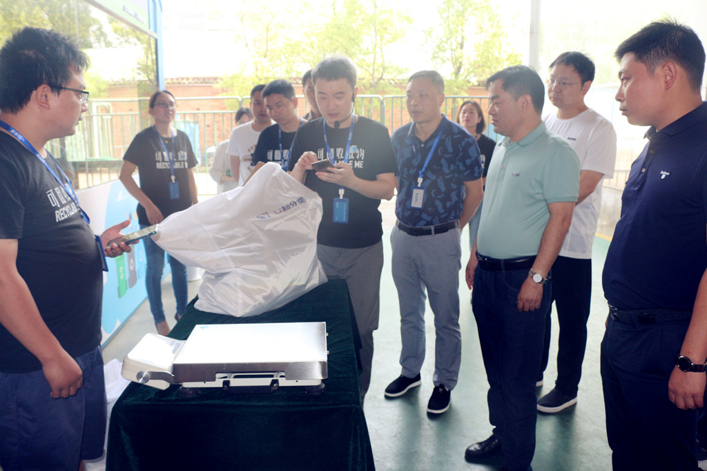 启动仪式现场,与会领导共同体验了蓝屋分类投放、智能蓝牙称重及在线支付,同时听取了365上市公司官网常务副总经理何明泉、365上市公司官网固废总经理黄山多、一起分类总经理宋镇就长沙县「三网融合」蓝色体系模式、长沙县可回收物资源化综合利用中心总体规划及建设方案等做的汇报。