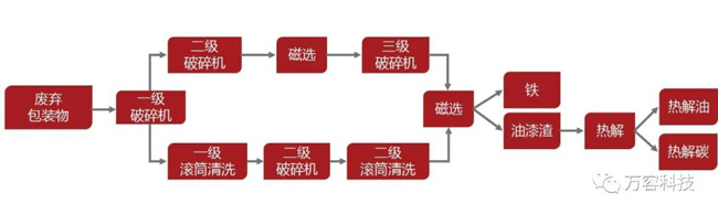 365上市公司官网利用多级破碎及清洗预处理工艺,将金属与油漆有效剥离,漆渣通过低温热解方式,形成热解油、热解碳,从而达到资源综合利用的效果。