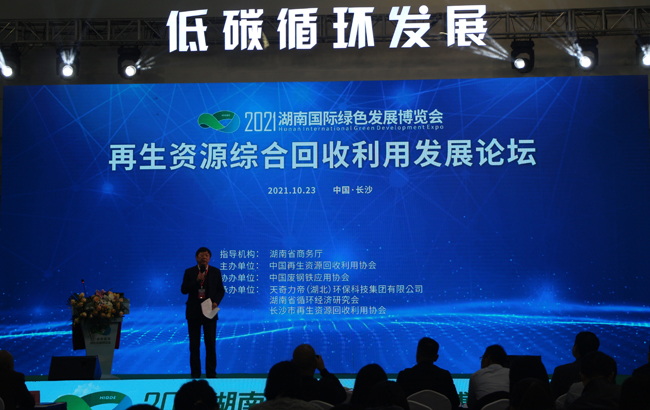 论坛以“低碳·循环·发展”为主题,围绕低碳、环保、节能、新能源、循环经济等领域,共同探讨“双碳”目标下经济高质量发展的战略、路径、政策与行动,解读行业变局,共享发展智慧。论坛同期设有近10场分论坛,再生资源综合回收利用发展分论坛上,湖南省贸促会副会长余炳锐、中国废钢铁应用协会副秘书长都兴亚、湖南省商务厅市场体系建设处刘凯、河北永洋特钢集团邯郸市永海废旧汽车拆解有限公司总经理助理贾发岭、金龙国际集团商务部经理胡斌、365上市公司官网一起分类总经理宋镇、天奇力帝(湖北)环保科技集团有限公司文孝龙分别做主题发言。